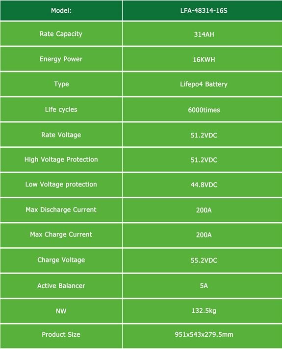 LITHIUM BATTERY 314AH 51.2V 16 KW